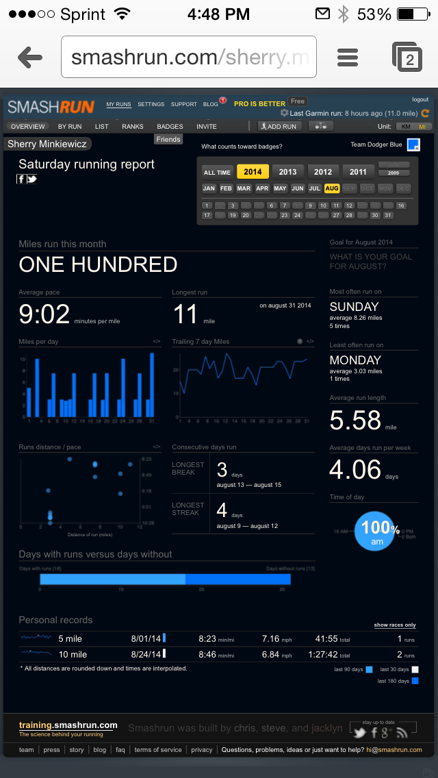 Sunday was my long run at race pace. I ran eleven miles. I tried some ENERGYbits, which I’ll give my full review later, and used my Simple Hydration bottle to hydrate. I also used a HoneyStinger gel at the halfway point. I was having a good run until I started getting a side ache a little after mile 8. My right side started to hurt quite a bit that I had to slow down and stop. I drank some water and started back up and pushed through. Other than that, it was a good run.
