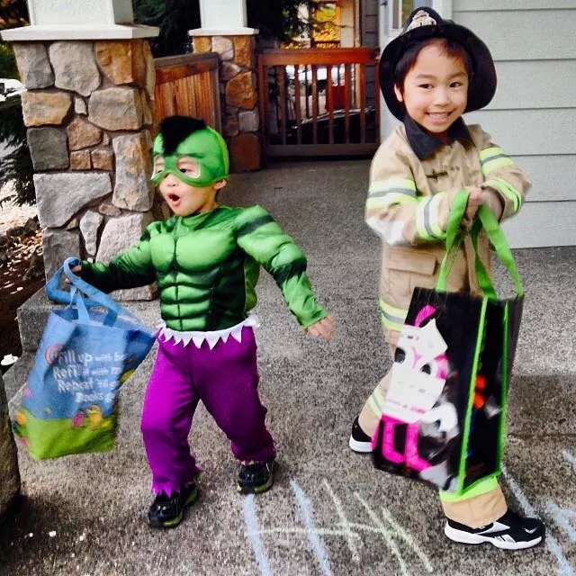 4. Seeing the kids in costume. It’s so cute when they’re all dressed up in costume. It’s great seeing all the different costumes other kids are wearing too. There are always some really creative and great homemade ones. Last year I remember seeing a cool Minecraft costume that was homemade. The pic below is from last Halloween. It’s funny because I asked what my kids wanted to be for Halloween this year and they wanted to be the same thing as last year. What are the odds of that happening? Lol. It’s great that their costumes still fit. 🙂