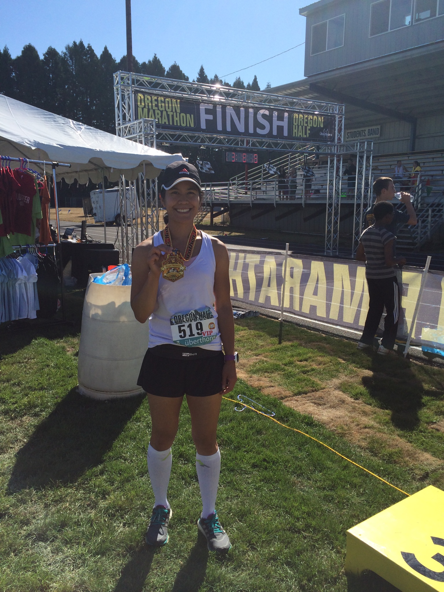 In September, I had my final half marathon race of the year, the Oregon Half Marathon. This was a good course. We ran through farmland as well as through the Gallon House Bridge, the oldest covered bridge in Oregon. I was so happy to PR on my half time again!