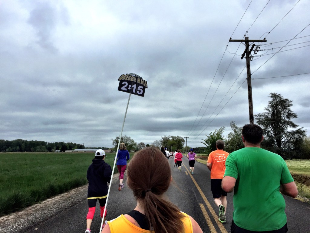 Here’s a pic of me with the pacing sign. I was helping pace 2:15.