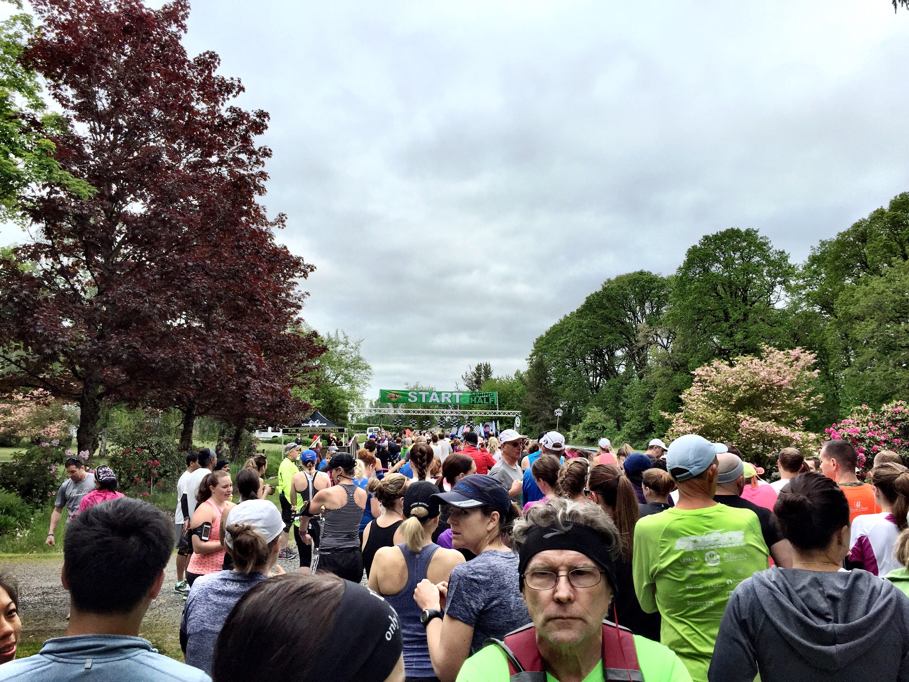 My day began around 5 am in the morning. The Oregon Spring Half Marathon took place at St. Josef’s Winery in Canby, OR, which is 22 miles South of Portland. I wanted to be ready to leave by 6 am since Google Maps said it would take about 45 minutes to get there. I had to be there by 7 am since that was the scheduled meeting time in front of the winery for the pacers. I also had to get my bib and pacer tank. It was my first time going to St. Josef’s Winery so it was nice to leave early in case we got lost or something. We got there on time and I met up with the other pacers. Here’s some group pics: