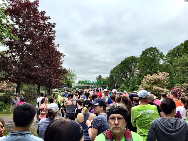 The weather was pretty good for running, 48 deg F. according to my Garmin data. I’m always cold at the start but once I start running it’s all good. I was nervous about pacing for the first time. I wasn’t sure how it would go since I hadn’t run the pace I was pacing for at all. It’s slower than I’m used to but it turned out fine. Here are pics of the start: