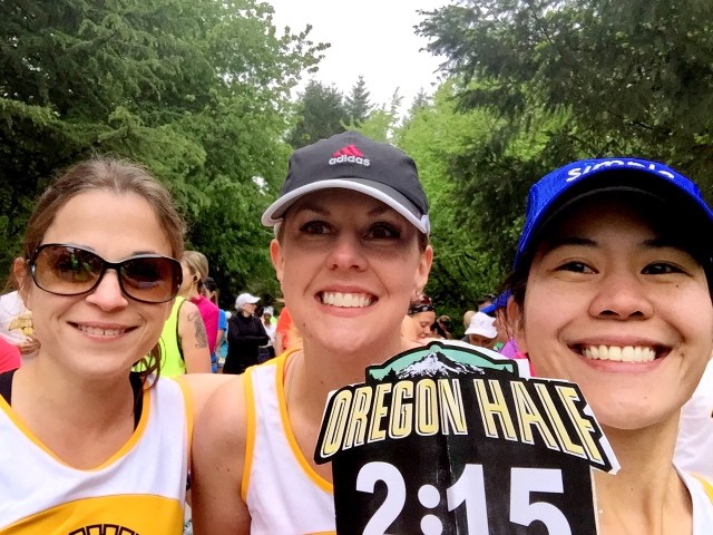 Here’s the pre race selfie with my fellow 2:15 pacers, Angela and Melanie.
