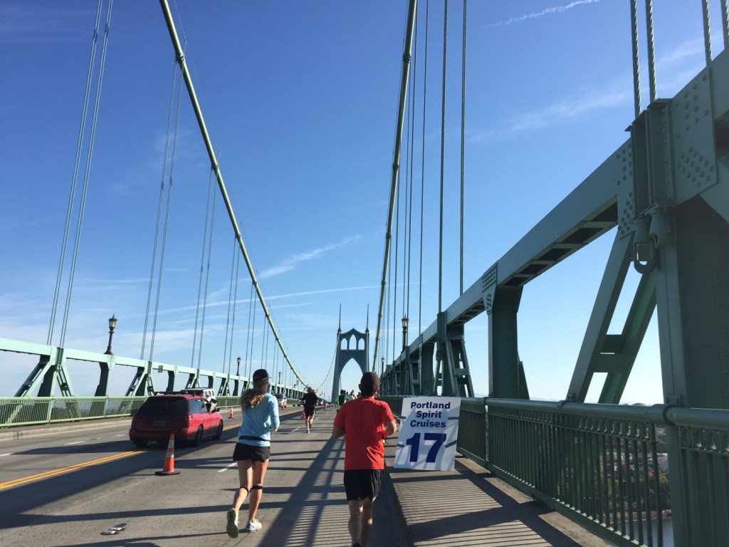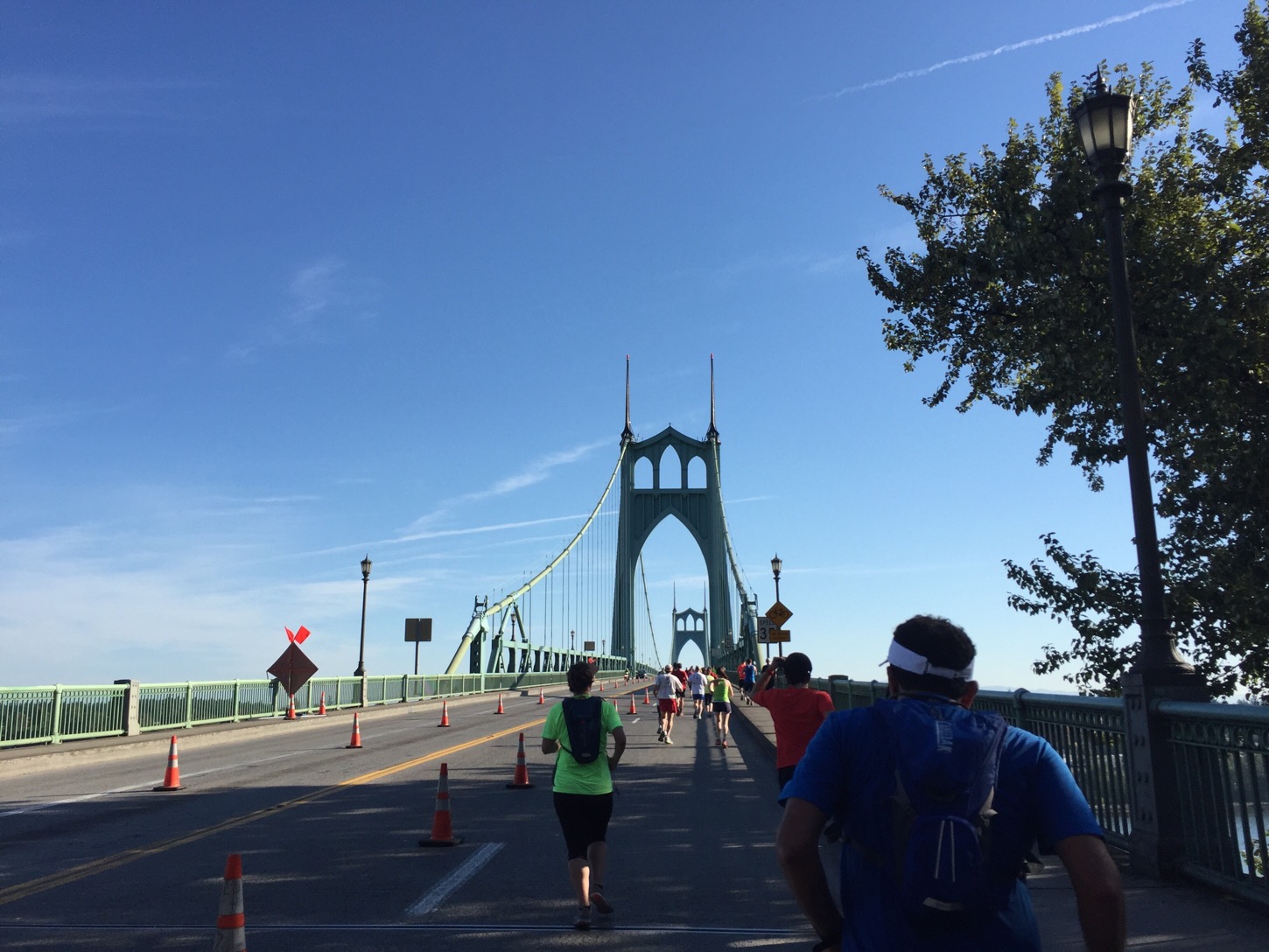 A nice pic of St. John’s Bridge.Once I started running again, I couldn’t pick up my normal pace. My energy was gone or something. I was just going slower. So I walked numerous times throughout the rest of the race.