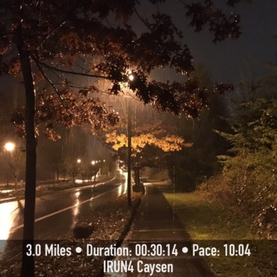 Tuesday – Ran 3 rainy morning miles before work.