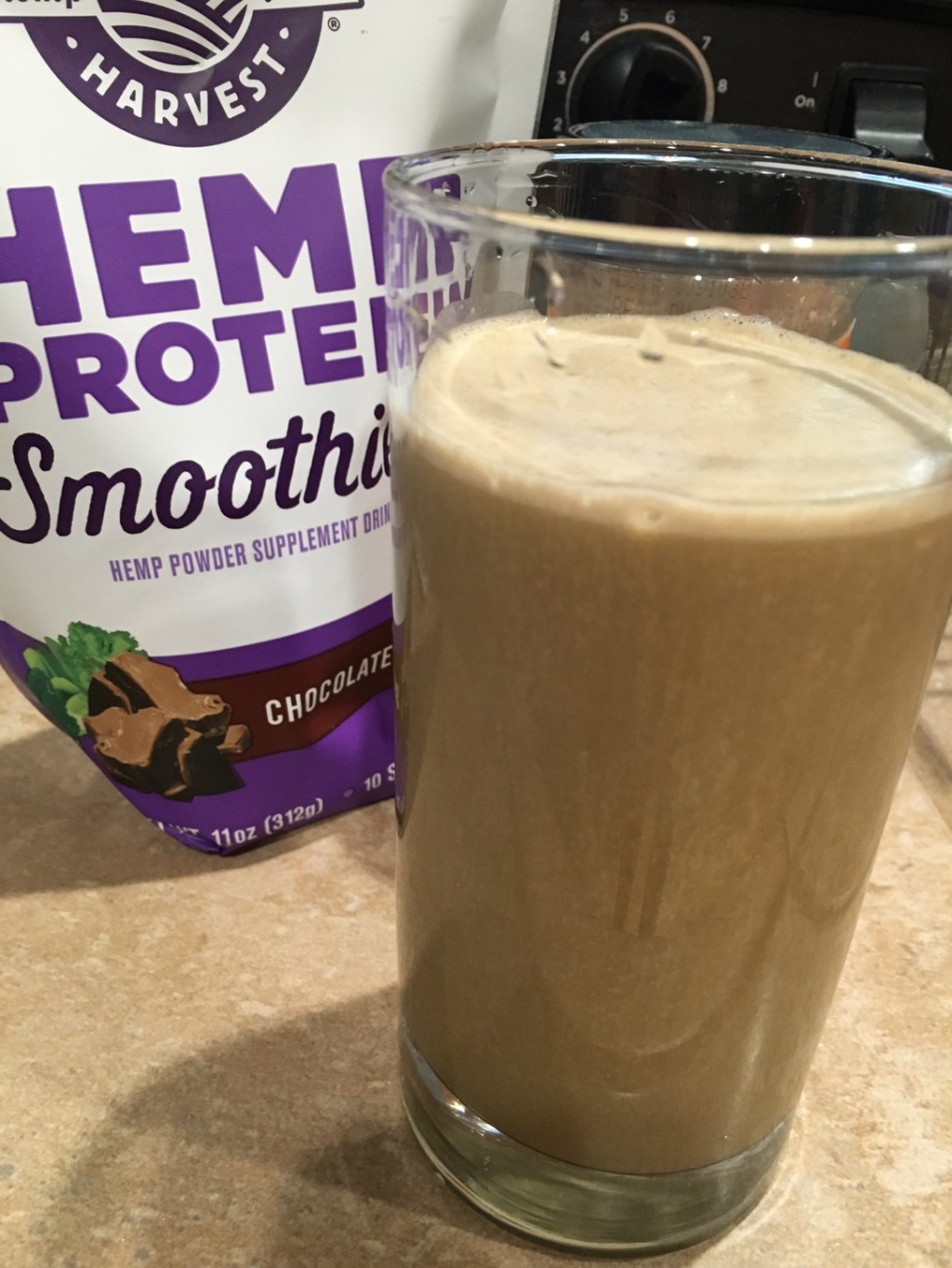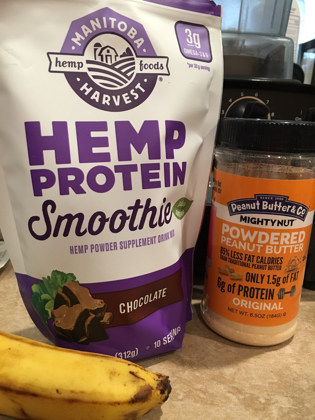 I used 4 TB of the Chocolate Hemp Protein Smoothie, half a banana, and 2 TB of peanut butter (I used the powdered peanut butter but regular peanut butter works great too) as well as a cup of water and about 6 ice cubes. Tasted great!