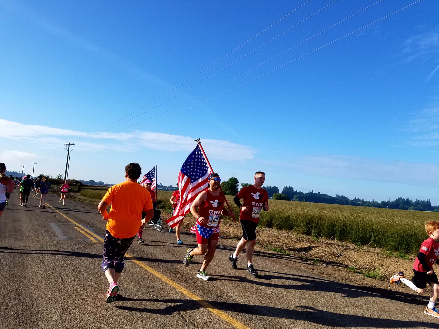 Team RWB was there. Team Red, White and Blue help enrich the lives of America’s veterans by connecting them to their community through physical and social activity.The pic below is when we were heading back to Heirloom Roses. You can see the roses on the sides.Here’s the hill.