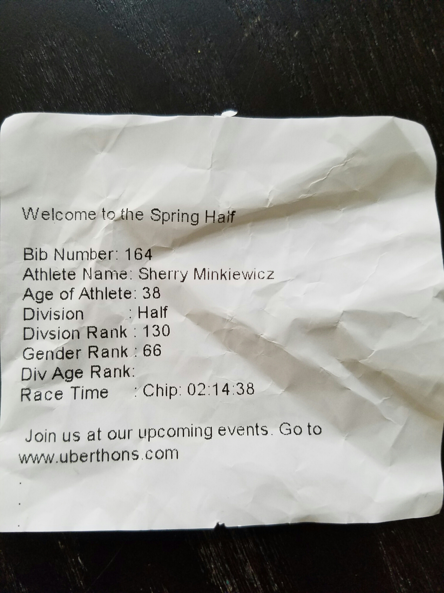 We ended up coming in at 2:14:38. I would say that was a successful time. Love how Uberthons races have your results right away that you can print out!