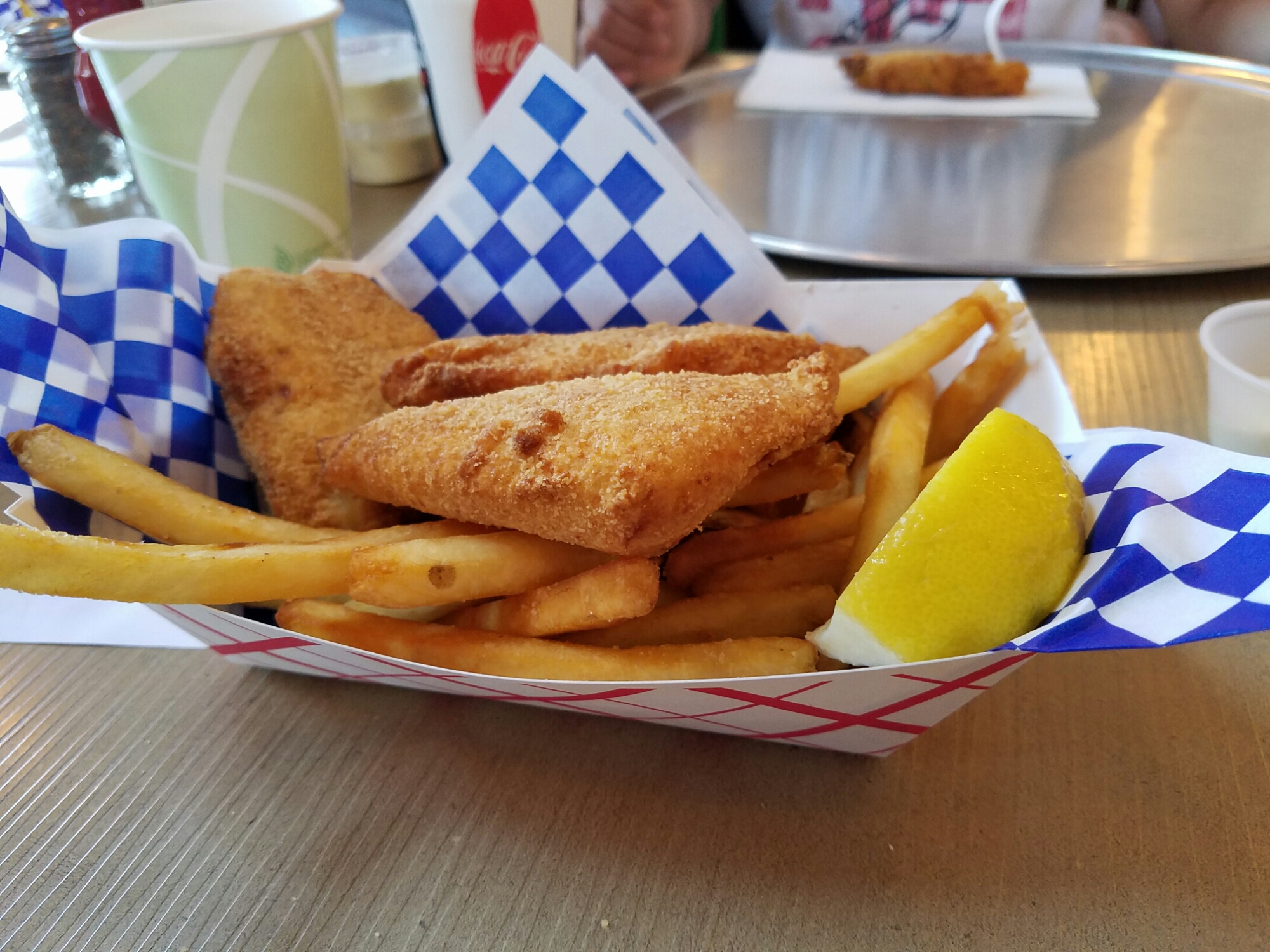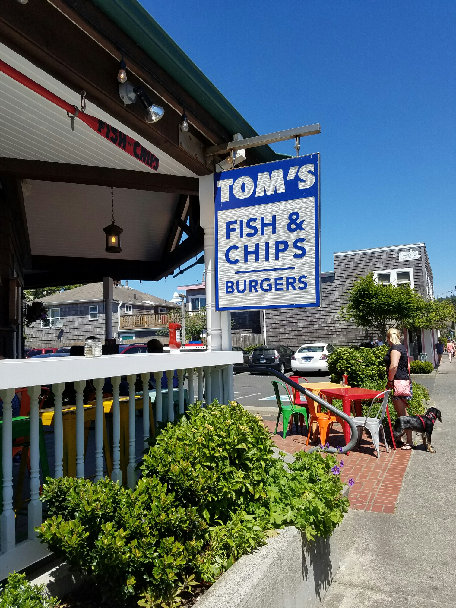 The weekend was fun too. On Saturday we decided to go to the coast since it was going to be 98 deg F at the house. We don’t have central air so it was a perfect day to head to the beach where it was cooler. It was about 78 deg F and I thought felt good. We decided to eat lunch first and went to Tom’s Fish & Chips.