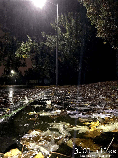 Wednesday – I was sore from the Max 30 workouts, but I ran 3 rainy miles, avg heart rate was 135.