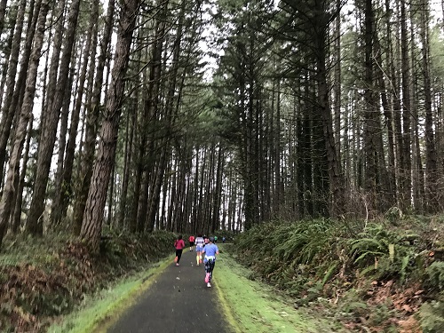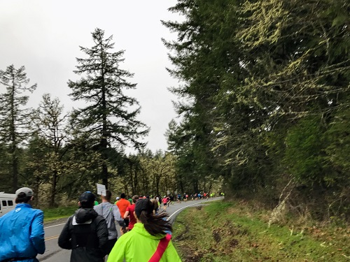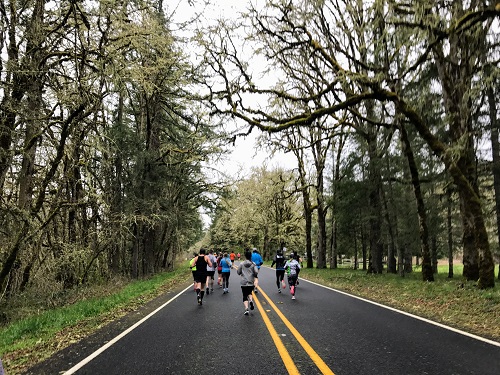 This was my first time running the Cottage Grove Half Marathon in Cottage Grove, OR. It is a point to point course that’s fast and according to my Garmin had an elevation loss of 390 ft with an elevation gain of 172 ft. Cottage Grove is about 2 hrs and 10 min south of Portland. So it was a good drive away from my place. I had booked a hotel about five minutes away from Bohemia Park where last chance packet pick up was and where the buses were departing, so it was all good.